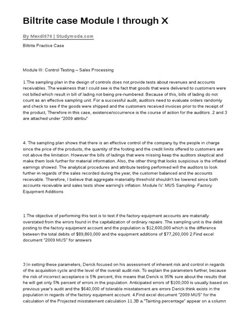 Download SOLUTIONS TO BILTRITE BICYCLES AUDIT CASE MODULES Kindle Editon